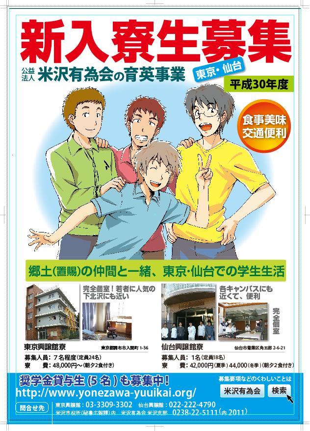 米沢有為会の運営する学生寮は東京興譲館寮と仙台興譲館寮の2つで、多くの置賜地方の高校出身者などが利用しています。