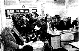 冒頭、進行役の米野支部長より「今回の講師は、従来と趣向をかえ、会員ではあるが、いわば、外部の方にお願いした。講師の西舘さんは、井上ひさしの先妻として、大変な修羅場をくぐり抜けてこられた方と聞いているが、今日は、新聞記者やマスコミもいないので思う存分お話願いたい。また、西舘さんは、徳川夢声を偲ばせる話し上手な方」との紹介があった。