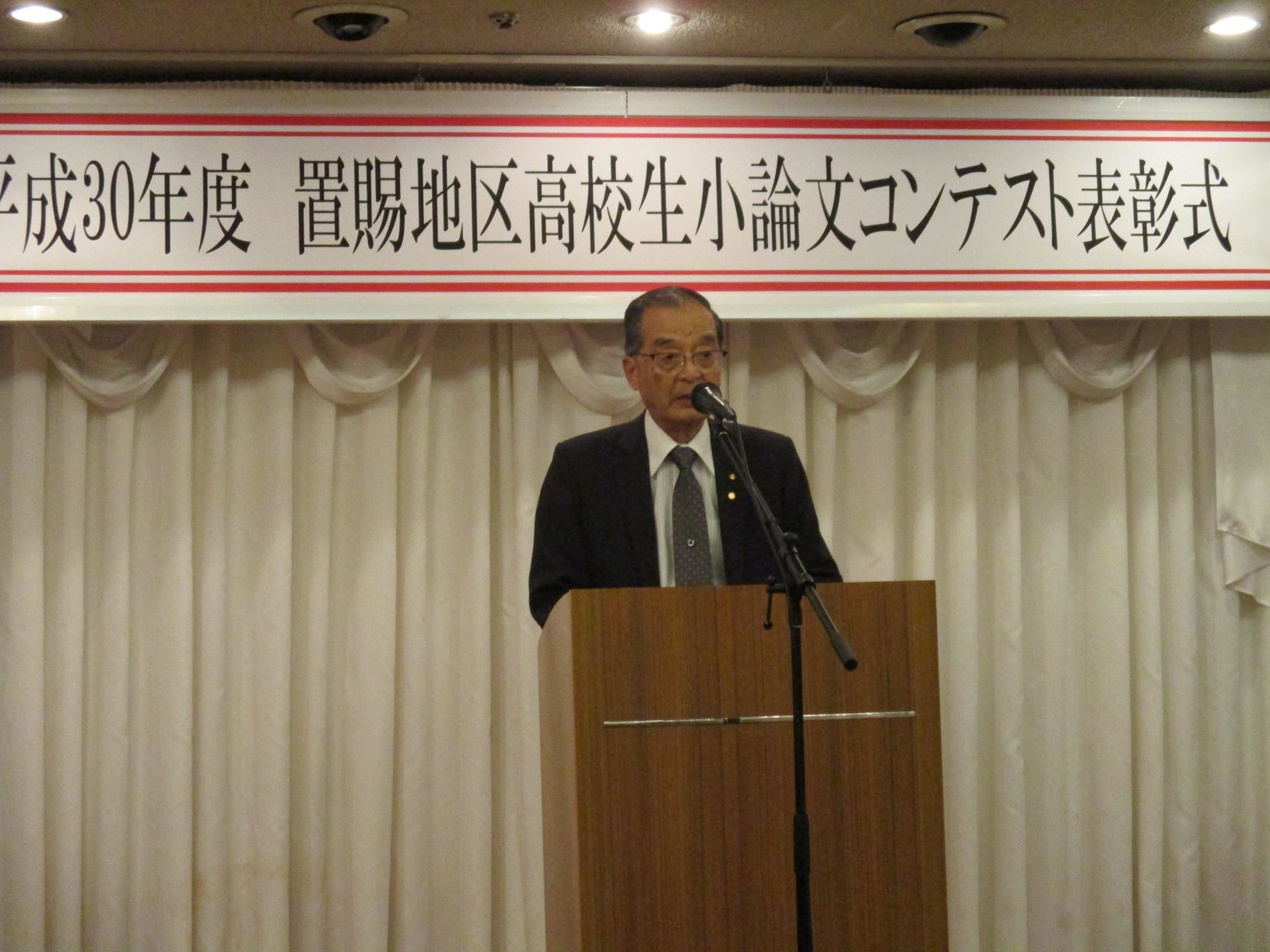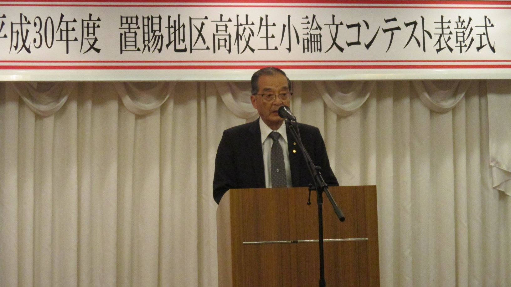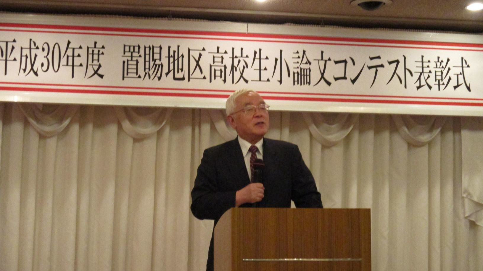 小論文コンテスト実行委員会の種村信次委員長は挨拶の中で、「置賜区内から若者流出が続く中、高校2年に地域の将来と自分の生き方を考えてほしいとの願いからこのコンテストを開始した」と趣旨を述べました。