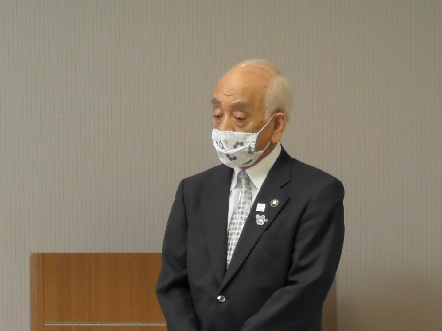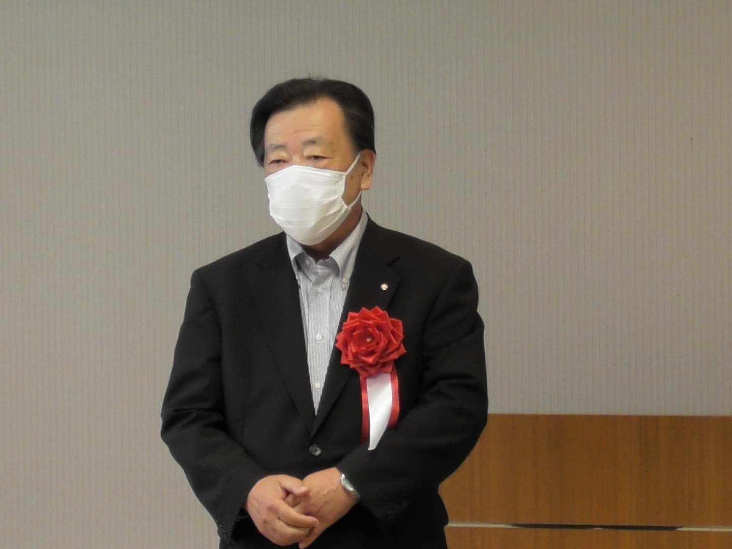 表彰状伝達後、中川勝米沢支部長よりお祝いの言葉が述べられ、「米沢栄養大学の開学や道の駅米沢の開業など米沢市の重要課題が解決、完成した時期に、会頭として先頭に立って商工会議所の皆さんと共に運動を進めていただいた」と氏の功績を称えました。